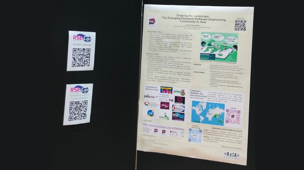 At RSECon23, I had the opportunity to present a lightning talk and a poster titled “Shaping the Landscape: The Emerging Research Software Engineering Community in Asia.” This poster highlighted the journey of RSE Asia in 2023 and my work as a Community Manager (Asia) for the Research Software Alliance.